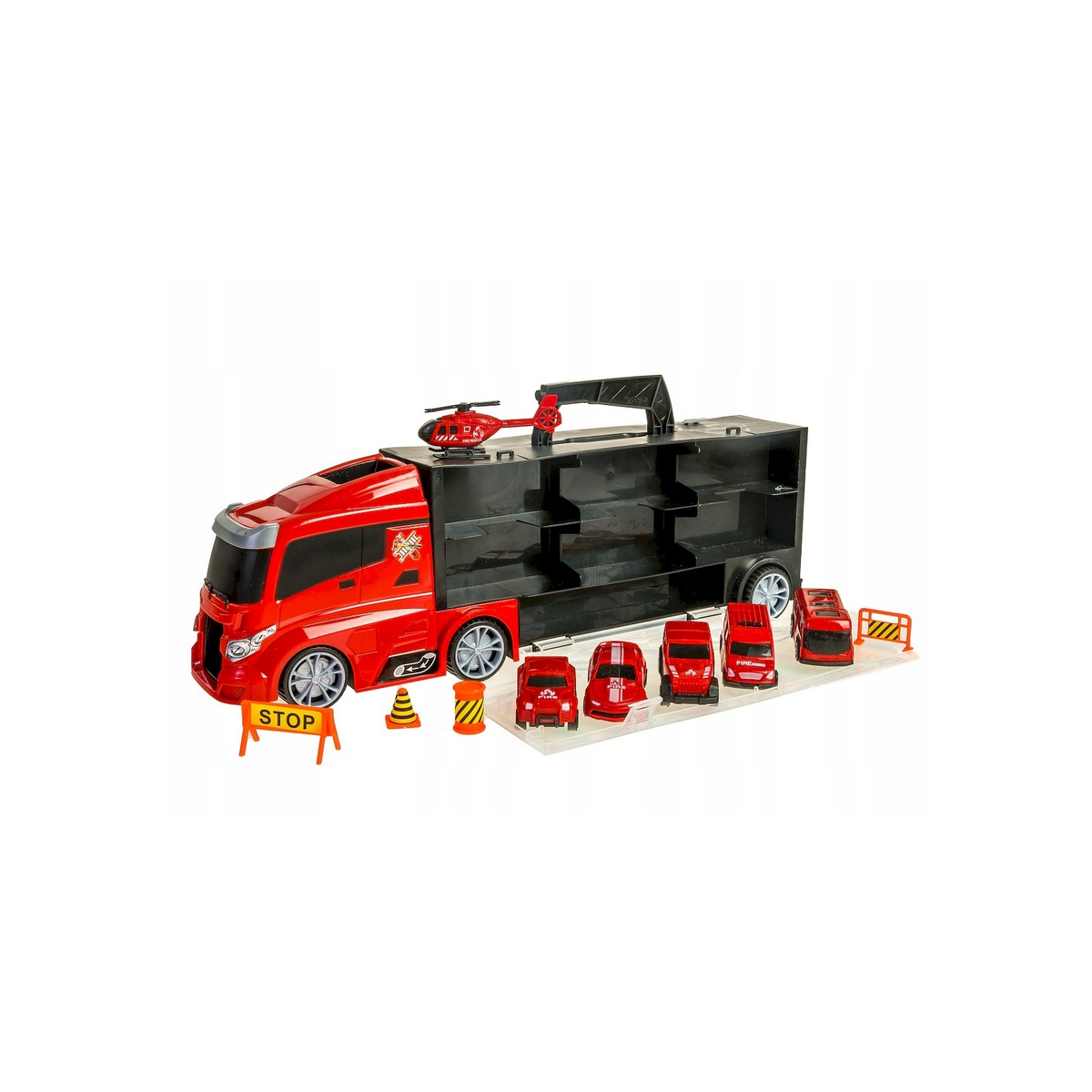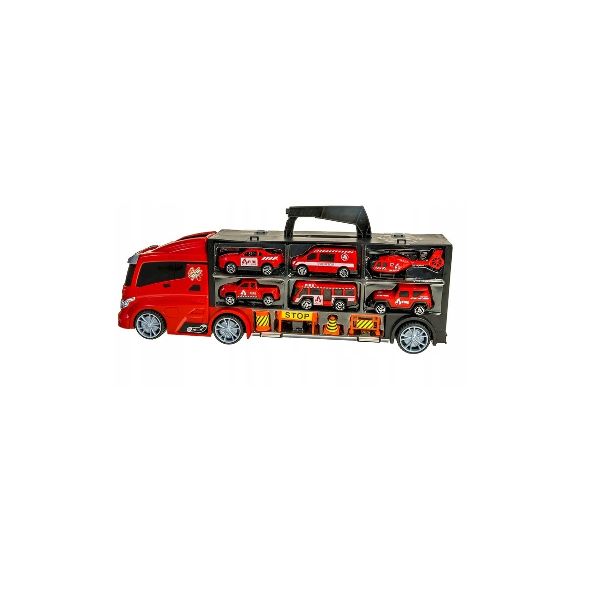 Każde auto posiada w walizce osobną przegrodę, a kabina ciężarówki może służyć jako wygodny wyjazd, by ruszyć do zabawy.