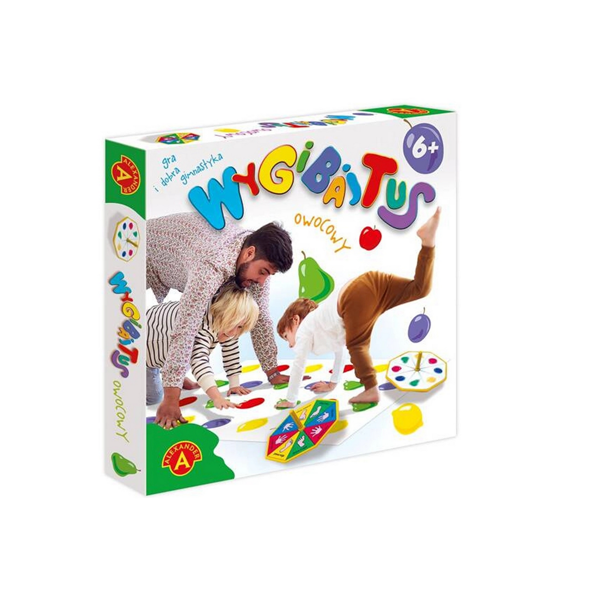 Wygibajtus Owocowy - gra, w której każdy z graczy gra całym ciałem. W zależności od wskazań na tarczy bączków, gracze muszą postawić swoje stopy i dłonie w odpowiednich miejscach na planszy. Gracz, który nie może zająć na planszy wskazanego miejsca odpada. Wygrywa ten, kto szczęśliwie losował i był najbardziej wygimnastykowany. Gra jest doskonałą rozrywką dla dzieci i dorosłych, zapewnia wiele emocji i skłania do ćwiczeń gimnastycznych.