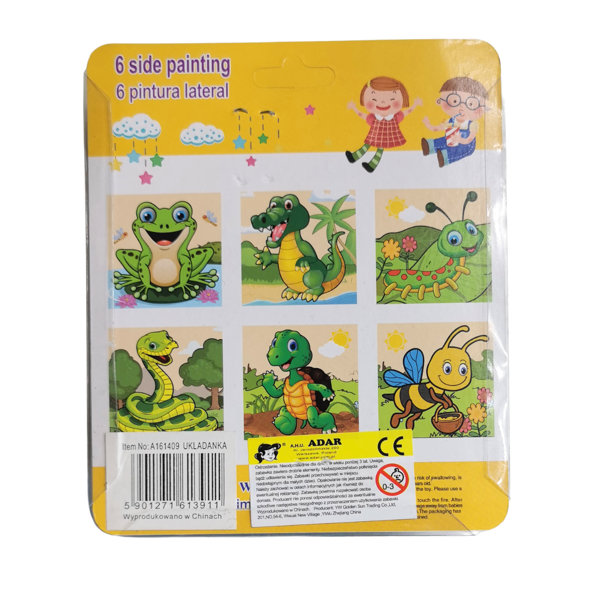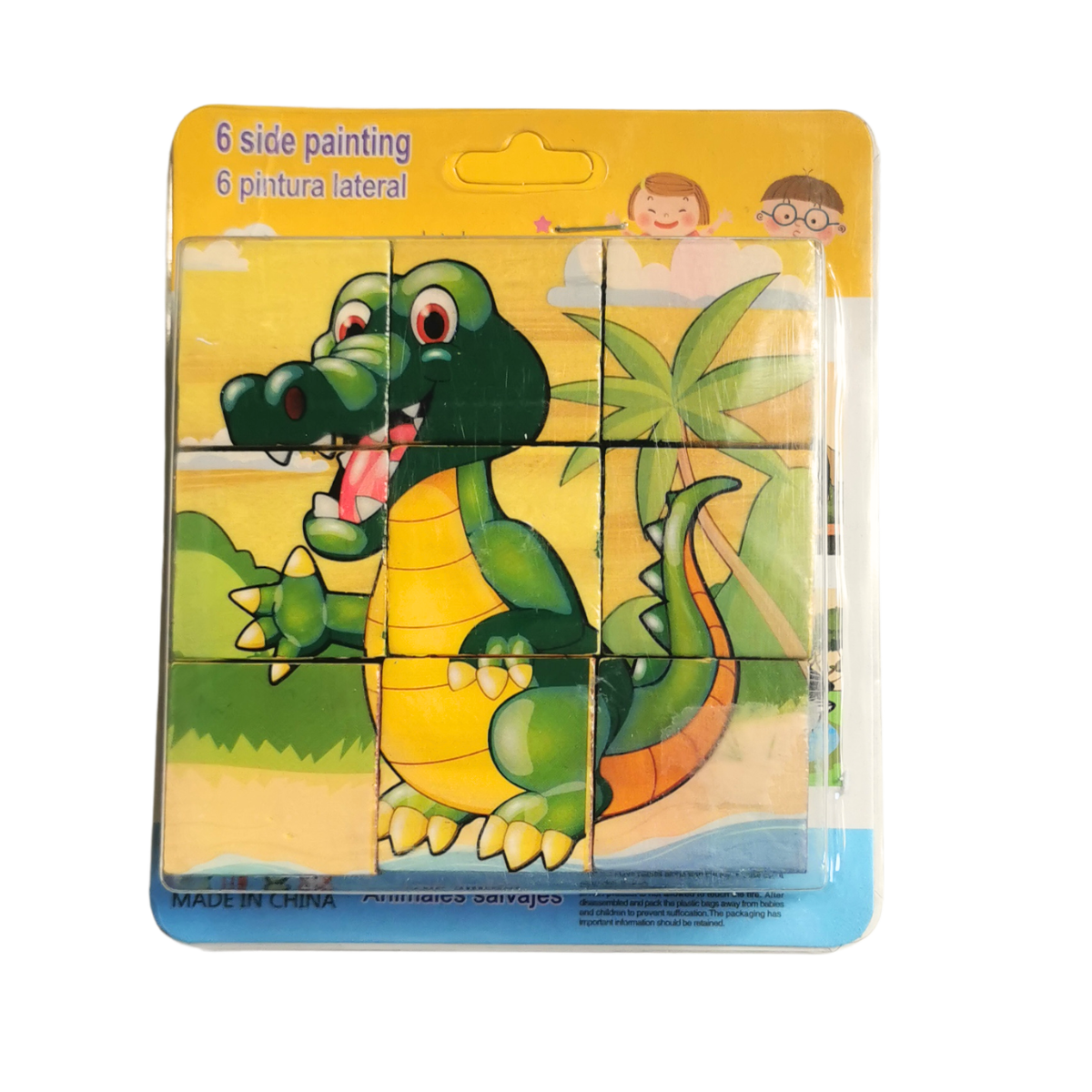 Każdy klocek posiada 6 stron i na każdej ze stron jest fragment innego obrazka. Razem w jednym zestawie klocków jest 6 układanek z różnymi obrazkami.