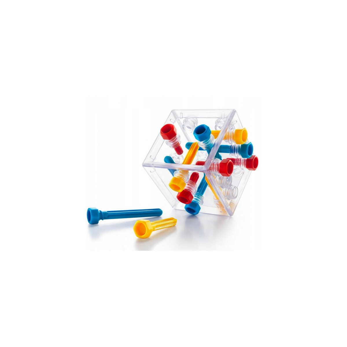 Udowodnij, że masz wyśrubowane standardy, rozwiązując 80 różnorodnych zadań. Wkręć w całości 13 śrubek w przezroczystą kostkę, tak aby się wzajemnie nie blokowały. Zaskocz znajomych i rodzinę nową przestrzenną łamigłówką od SmartGames. Szybko wkręcisz się w dobrą zabawę z kostką Criss Cross.