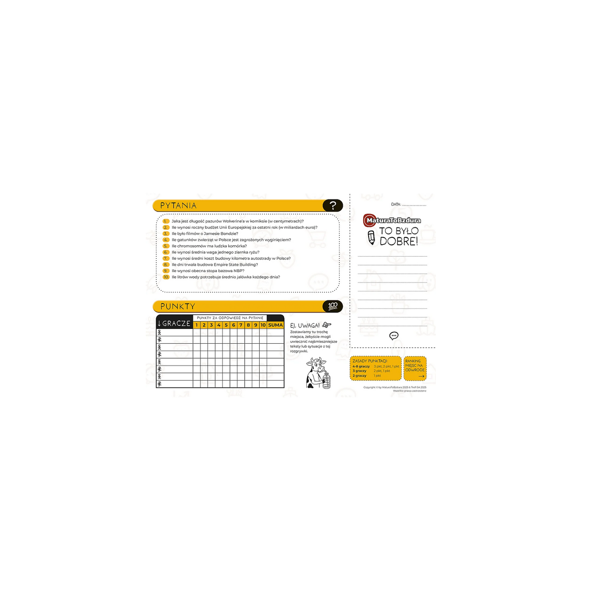 MaturaToBzdura Quiz to wyjątkowa gra towarzyska inspirowana popularnym kanałem MaturaToBzdura. W środku znajdziesz 400 nieprzewidywalnych pytań, na które… prawie nikt nie zna odpowiedzi!