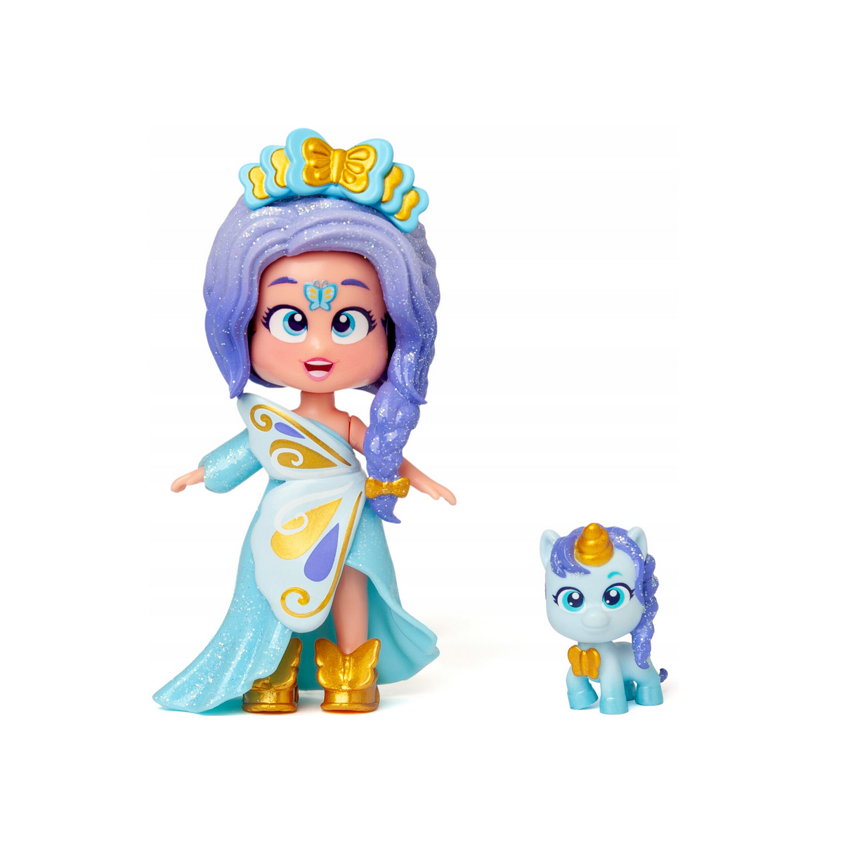 W zestawie znajduje się urocza laleczka oraz figurka inspirowana jednorożcem, która zachwyca brokatowymi detalami i kolorowym designem.
