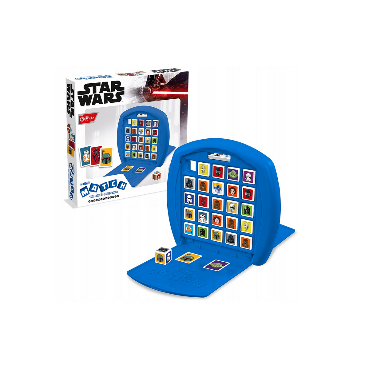 Wybierasz ciemną czy jasną stronę mocy? Wszystkie ulubione postacie najmłodszych fanów Star Wars znalazły się na pionowej planszy TOP TRUMPS MATCH! Wylosuj bohatera i spróbuj ułożyć jednakowy rząd w linii pionowej, poziomej lub na ukos. Uwaga na spadające kostki! Przeciwnicy nie śpią. Niech moc będzie z Tobą!