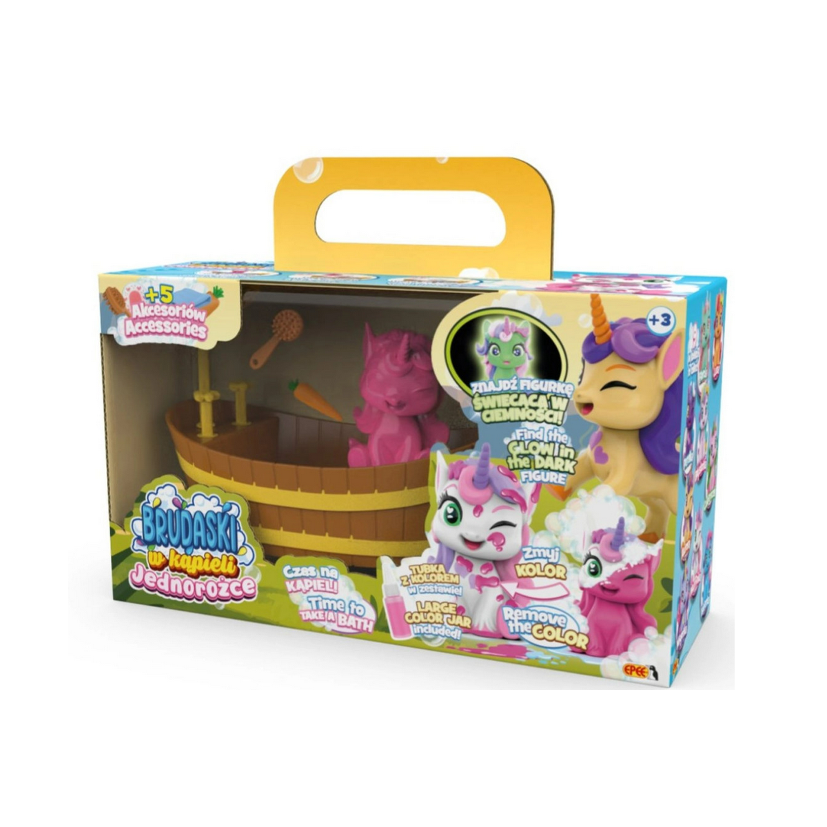 Zamień codzienną kąpiel w magiczną przygodę! Brudaski w kąpieli – Jednorożce w łazience to uroczy zestaw, który zachęca dzieci do zabawy w wodzie i dbania o higienę.