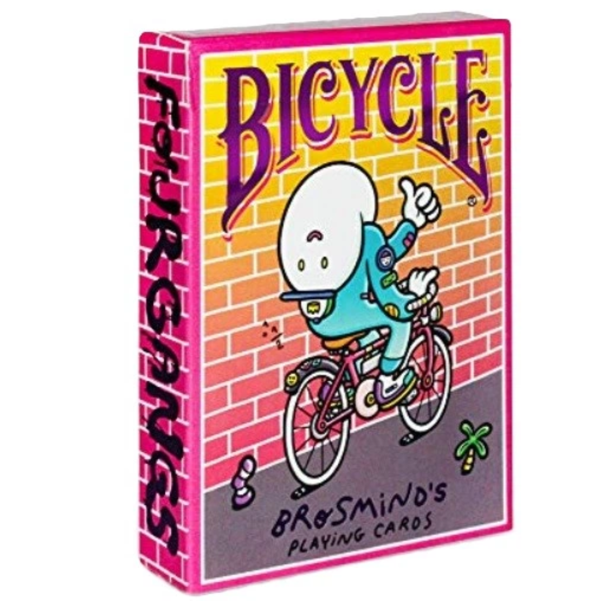 Bicycle Brosmind’s Four Gang to wyjątkowa talia kart stworzona we współpracy z kreatywnym studiem Brosmind. Nietuzinkowy, kolorowy design pełen humoru i charakterystycznych ilustracji sprawia, że każda rozgrywka nabiera unikalnego stylu.