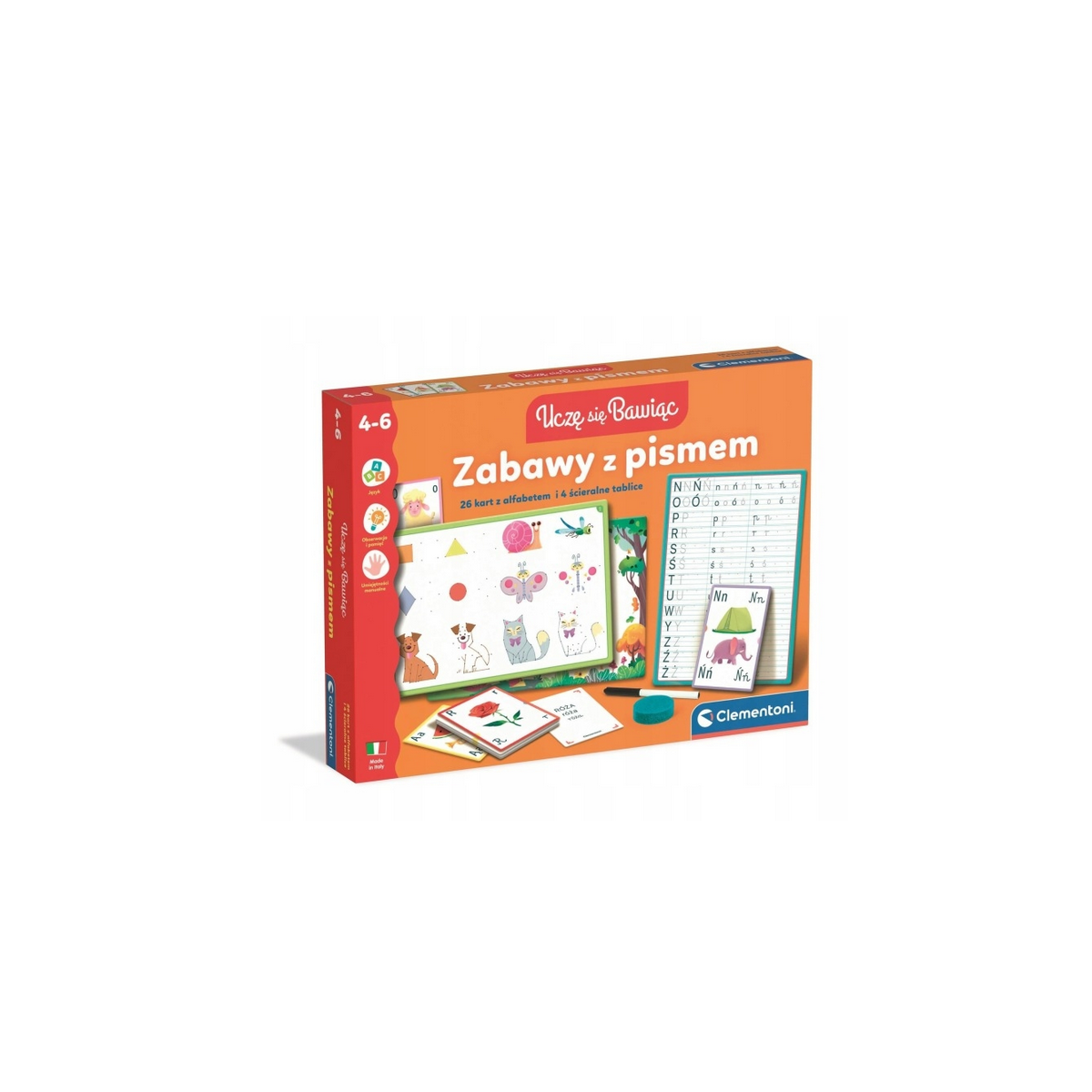 Zabawy z pismem to prosta i zabawna gra złożona z talii ilustrowanych kart i zestawu ścieralnych tablic z wieloma zadaniami o rosnącym poziomie trudności, które pozwalają dziecku zapoznawać się z czynnością pisania stopniowo i w przyjemny sposób.
