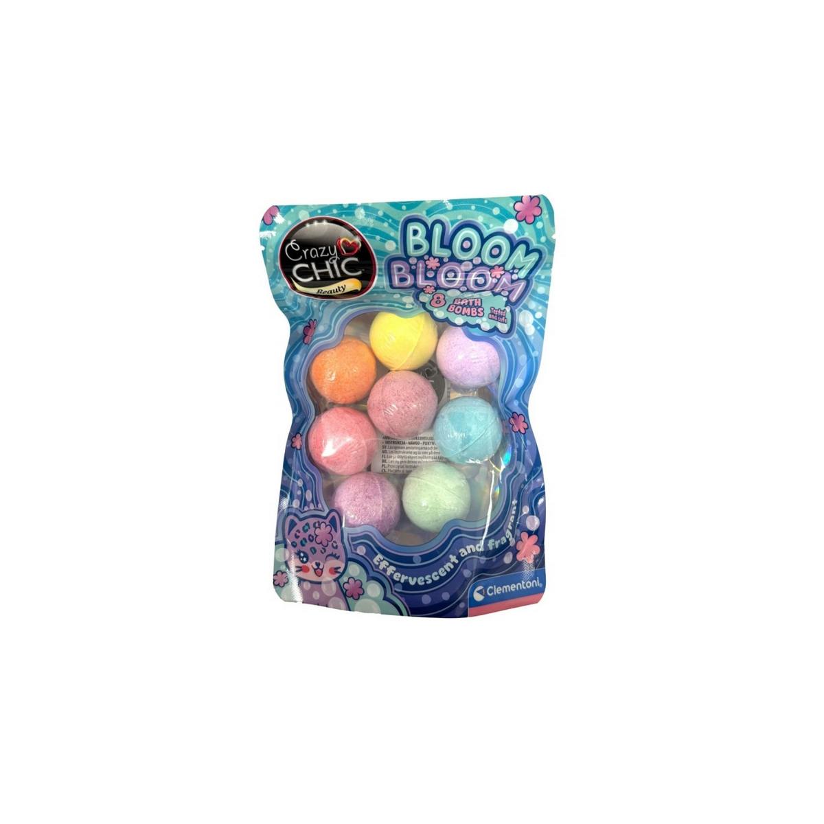 Clementoni Crazy Chic Kule do kąpieli Bloom Bloom to kreatywny zestaw dla dzieci, który zamienia zwykłą kąpiel w kolorową i pachnącą zabawę. Po wrzuceniu do wody kule musujące powoli się rozpuszczają, uwalniając delikatne zapachy oraz barwiąc wodę na przyjemne, pastelowe kolory.
