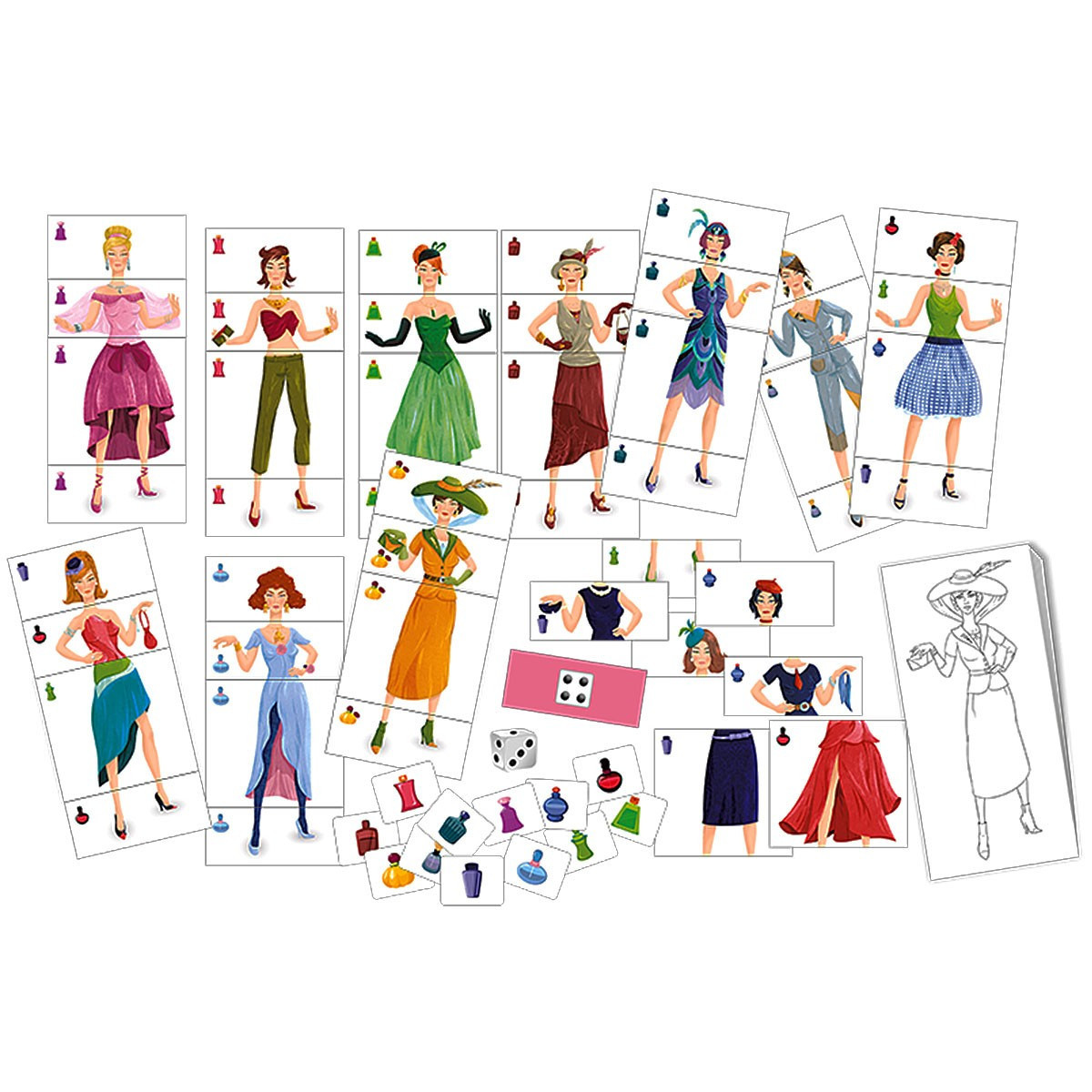 Modelki na wybiegu to rozwijająca wyobraźnię zabawa dla przyszłych projektantów i miłośników mody. Dzięki 48 elementom możecie ułożyć ponad 11 tysięcy różnych kreacji.