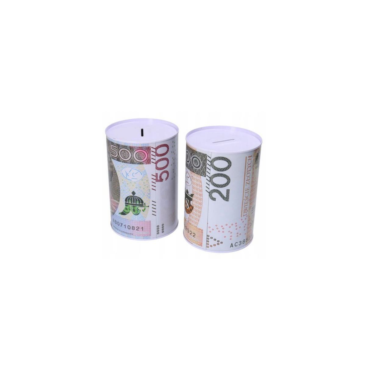 Wykonana z trwałego metalu, w formie klasycznej puszki, zapewnia bezpieczeństwo przechowywanych monet i banknotów.