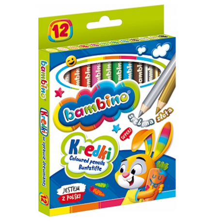 Wysokiej jakości kredki z glinki kaolinowej w drewnianej oprawie. Charakteryzują się wyjątkowo intensywnymi i nasyconymi kolorami. Doskonale kryją, idealnie nadają się do rysowania, wypełniania dużych powierzchni i wykonywania miękkich przejść pomiędzy kolorami. Kredki są grube, odpowiednio wyważone, przez co idealnie dopasowują się do małej dłoni dziecka. Produkowane są w Polsce, w zgodności z dyrektywą Parlamentu Europejskiego i Rady w sprawie bezpieczeństwa zabawek oraz rozporządzeniem Ministerstwa Gospodarki w sprawie zasadniczych wymagań dla zabawek, co gwarantuje bezpieczeństwo kredek Bambino.