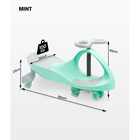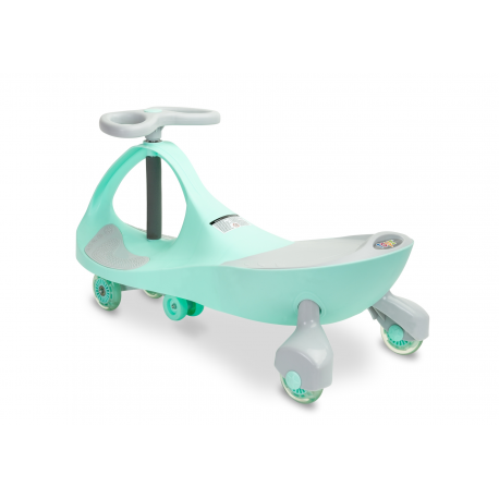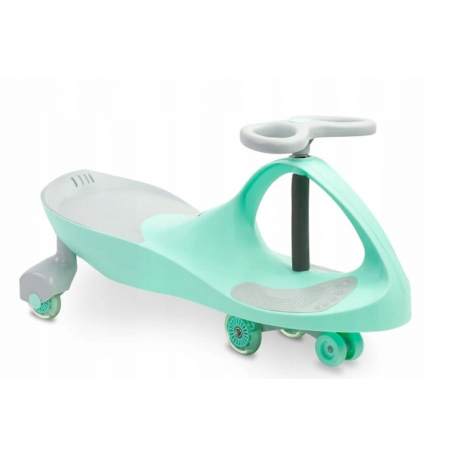 Poruszanie się nim polega na wykonywaniu naprzemienne ruchów kierownicą, bez użycia nóg. Można go używać na zewnątrz i w domu. Dzięki kauczukowym kółkom unikamy uszkodzenia podłogi, a przy odpowiedniej prędkości kółka zaczynają świecić. Specjalnie wyprofilowane siedzenie oraz antypoślizgowe miejsce na nóżki zapewniają bezpieczną zabawę.